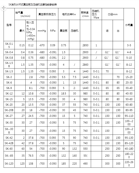 SK系列水環(huán)式真空泵及壓縮機(jī)是用來抽吸或壓縮空氣和其它無腐蝕性、不溶于水、不含固體顆粒的氣體,以便在密閉容器中形成真空和壓力,吸入氣體允許混入少量液體。